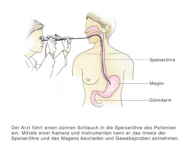 Eine Magen-Darm-Spiegelung, bei der die Speiseröhre, der Magen und der Zwölffingerdarm untersucht werden, ist wohl eine der am häufigsten durchgeführten Endoskopien. Hierbei wird das Endoskop durch den Mund in die Speiseröhre eingeführt und von dort in den Magen sowie den Dünndarm vorgeschoben.
